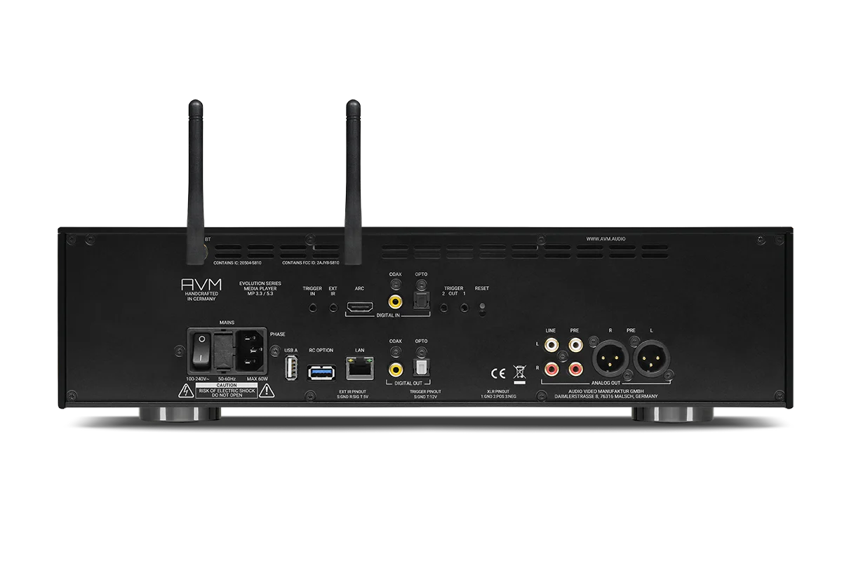 The new AVM X-STREAM Engine® is a revolutionary addition to the MP 3.3 and MP 5.3, capable of streaming all high-resolution audio formats up to 384/32 resolutions, including DSD (256). This streaming engine is an AVM proprietary development, fully software-based, and can be easily updated online for future-proof performance. The MP 3.3 and MP 5.3 come equipped with an HDMI (ARC) interface and modern Bluetooth 5.0 connectivity, as well as multiple digital inputs and a USB A interface as standard. The device also features new digital outputs that can now be volume-controlled on demand, and analog outputs (RCA & XLR) can also be volume-controlled, which is done in an entirely analog manner. The digital inputs can also be set to be signal-sensitive, so the MP 5.3 and MP 3.3 will turn on automatically when a signal is detected. These outputs can also deliver a volume-controlled digital signal, providing you with an unprecedented level of control over your listening experience.