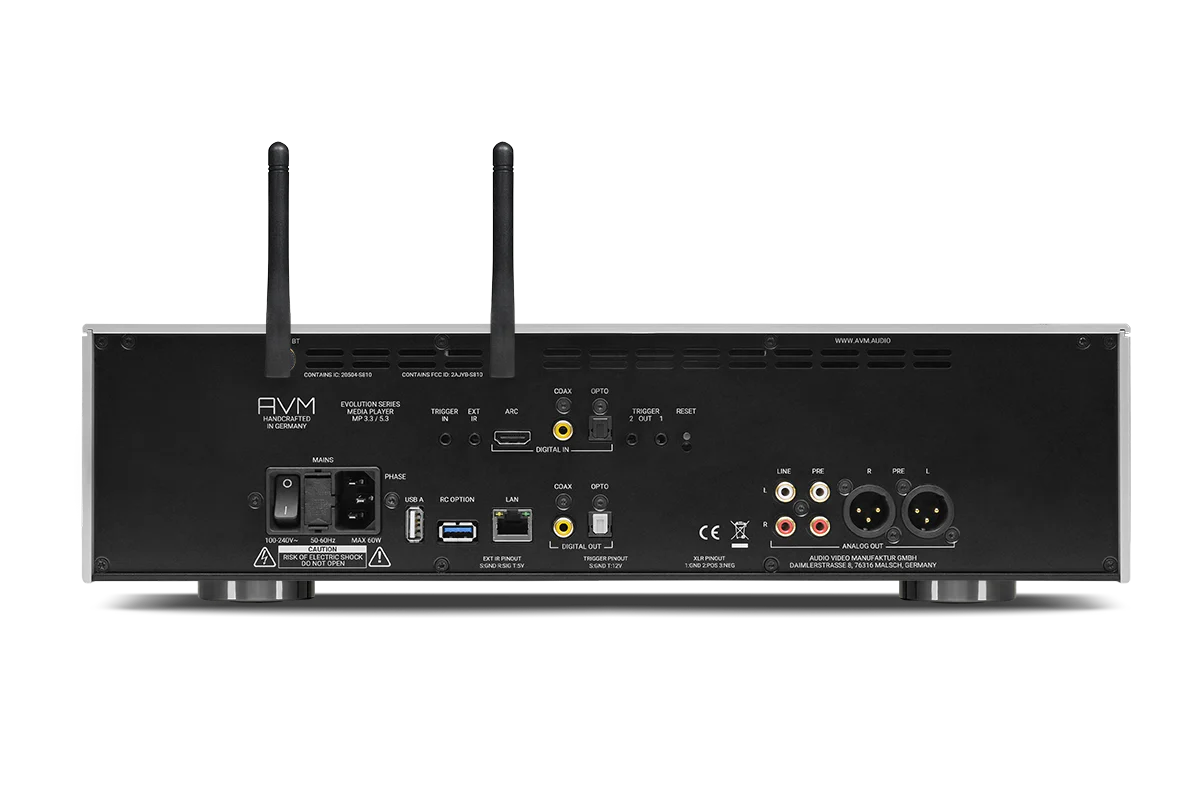 The new AVM X-STREAM Engine® is a revolutionary addition to the MP 3.3 and MP 5.3, capable of streaming all high-resolution audio formats up to 384/32 resolutions, including DSD (256). This streaming engine is an AVM proprietary development, fully software-based, and can be easily updated online for future-proof performance. The MP 3.3 and MP 5.3 come equipped with an HDMI (ARC) interface and modern Bluetooth 5.0 connectivity, as well as multiple digital inputs and a USB A interface as standard. The device also features new digital outputs that can now be volume-controlled on demand, and analog outputs (RCA & XLR) can also be volume-controlled, which is done in an entirely analog manner. The digital inputs can also be set to be signal-sensitive, so the MP 5.3 and MP 3.3 will turn on automatically when a signal is detected. These outputs can also deliver a volume-controlled digital signal, providing you with an unprecedented level of control over your listening experience.