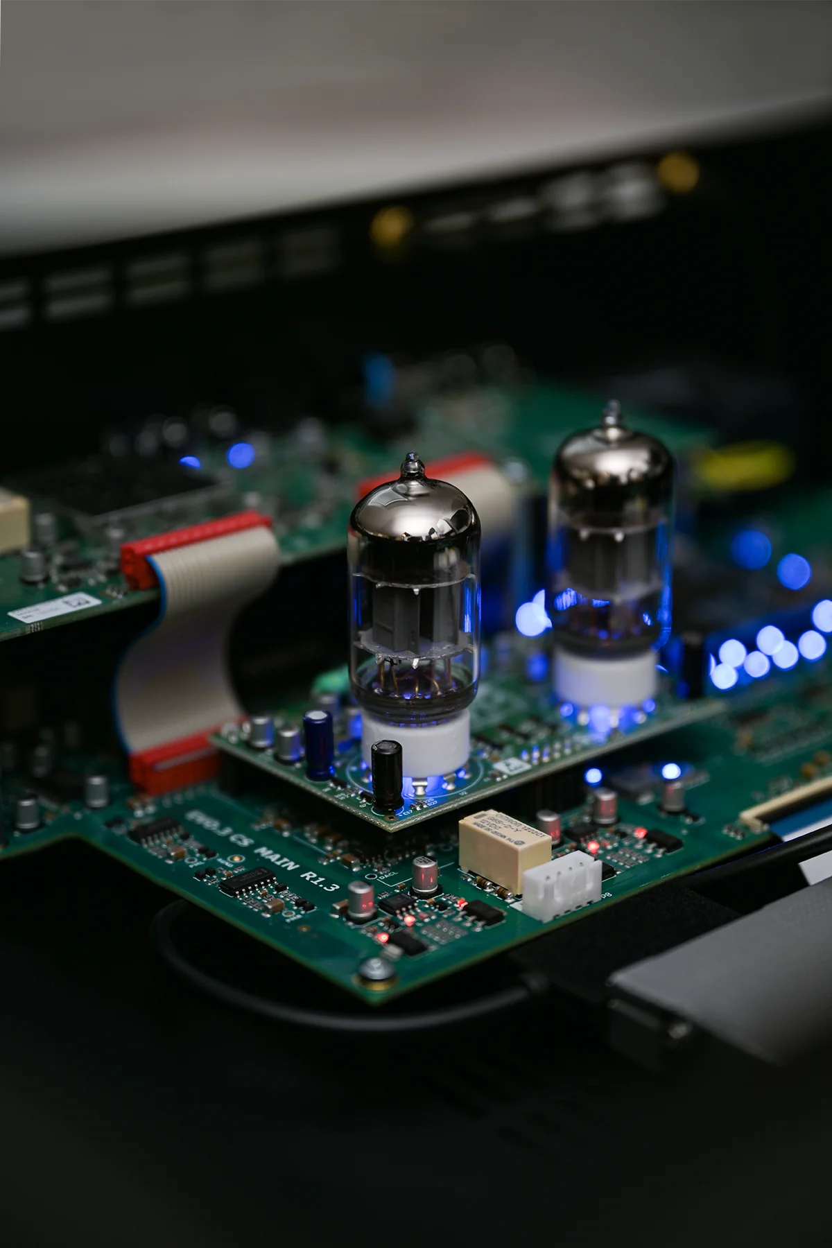 The standout feature of the EVOLUTION MP 5.3 is its Tube Line Stage, which is located in the preamp section of this audio masterpiece. Equipped with AVM’s own specially-manufactured tubes, our engineers have created an entire new circuit for the latest EVOLUTION series that fully unleashes the tonal charm of AVM tubes. The AVM-exclusive circuit technology guarantees an impressively long lifespan for the tubes (about 20,000 hours), so you can revel in unparalleled sound quality for years to come. The EVOLUTION MP 5.3 also stands out visually from the MP 3.3 with its glass panel on the top of the case, giving you a glimpse into the inner workings of the tube stages as they bring your music to life.