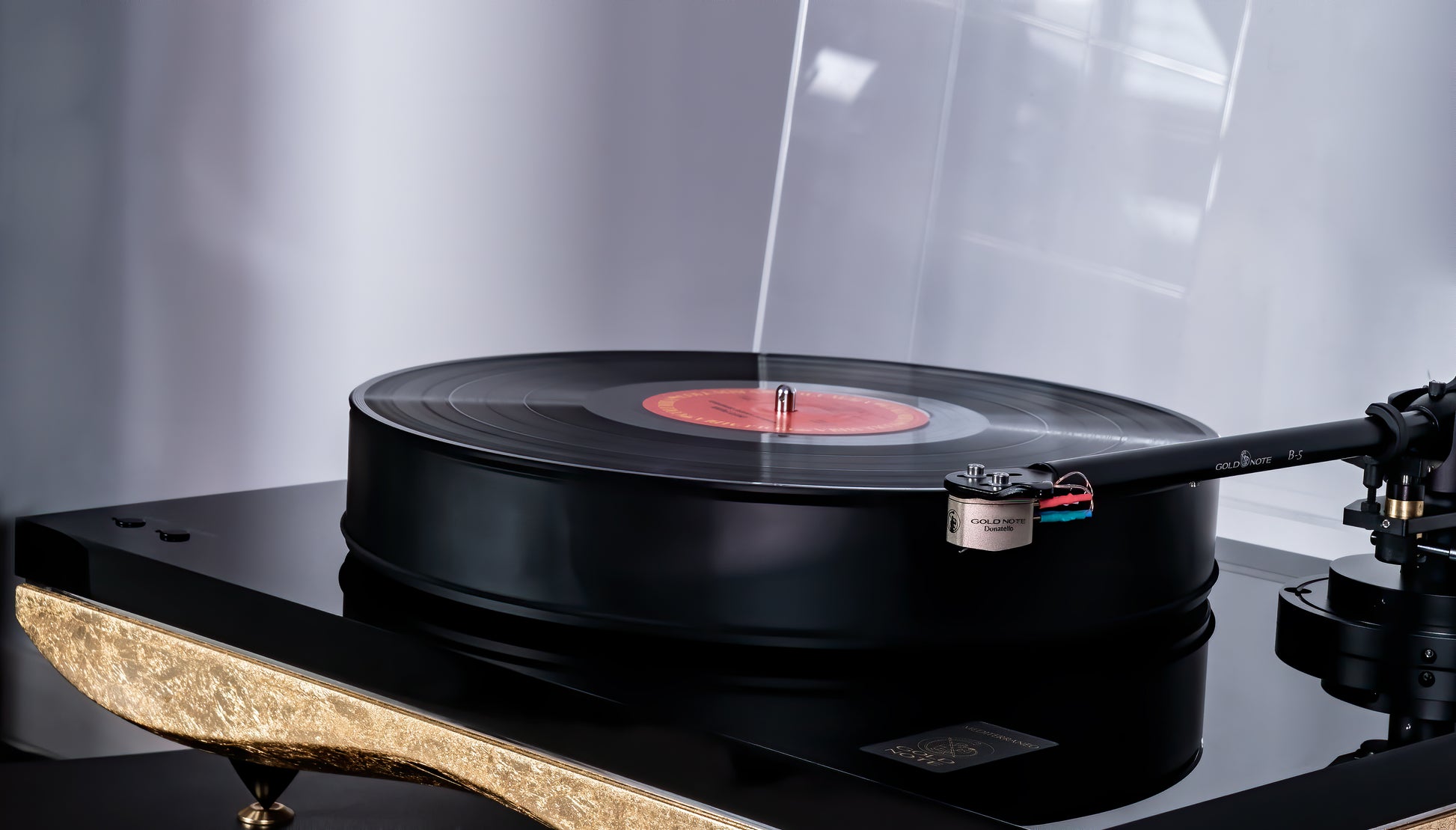 The 45mm thick high-precision platter, made of high-density POM, is belt-driven and powered by a proprietary control system developed on a Quadral-Core microcontroller enhanced by an audio converter. The power control rebuilds the AC wave to perfectly drive the 12V synchronous motor, removing vibrations while improving its torque to deliver the greatest dynamic and the finest detail.