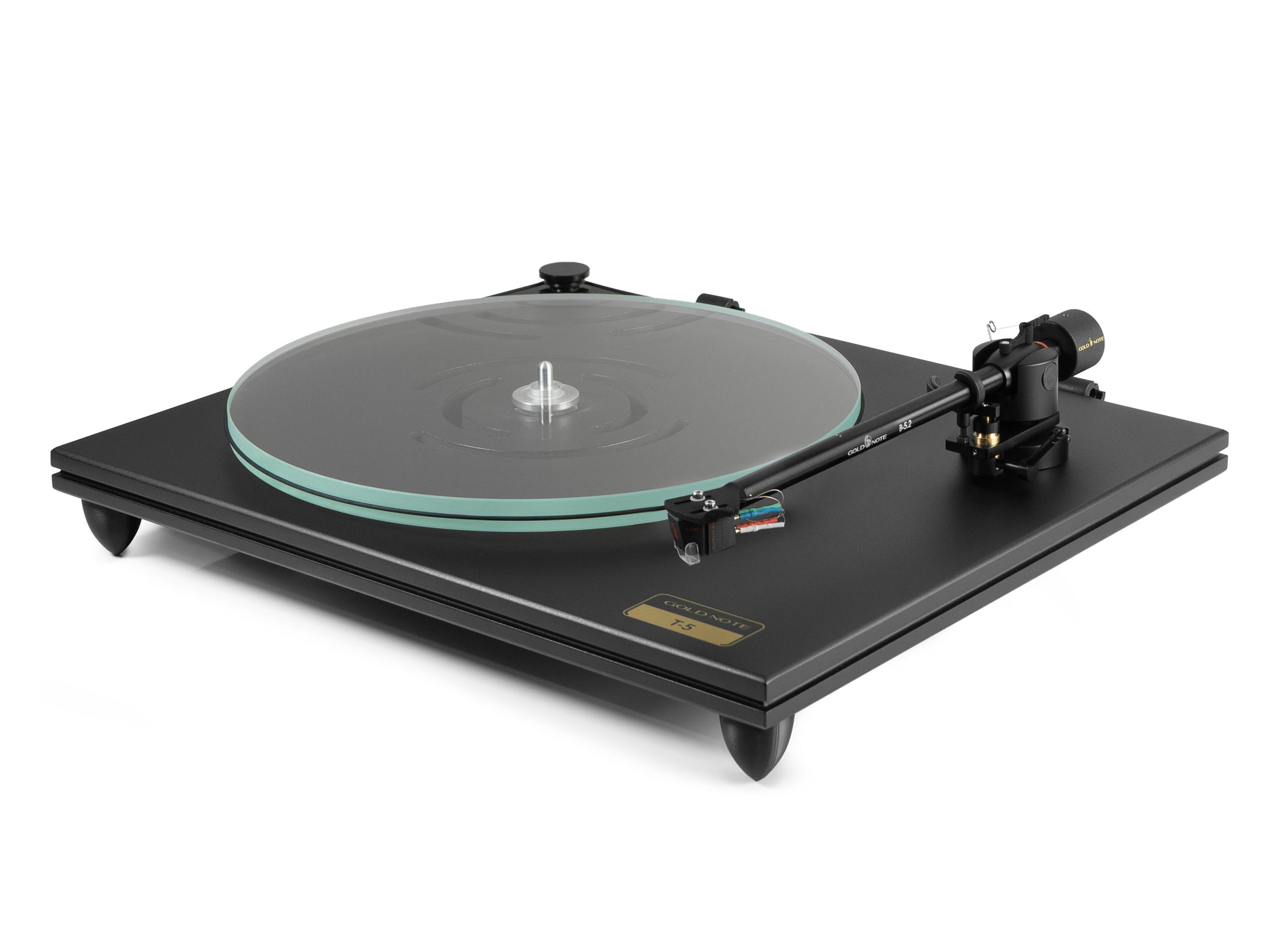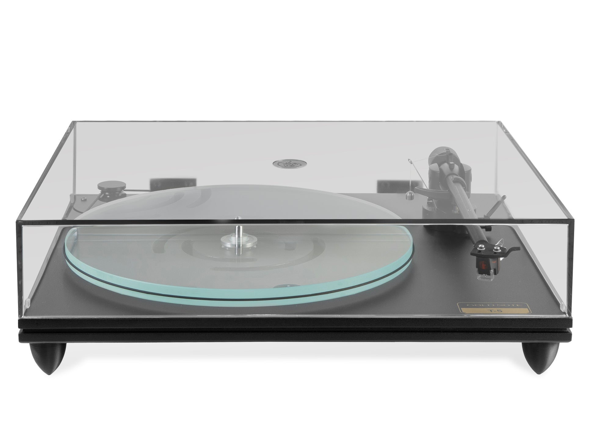 For the T-5, we have developed a 15mm thick platter made of ultra-clear glass, a high quality material that provides the right density and structure to extract fine details from the groove while minimising noise. The platter is matched with an inverted bearing, an elegant solution to increase the stability of the platter while also ensuring frictionless rotation.