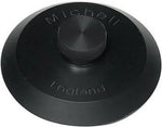 Black Delrin record clamp with anodised aluminium knob for use on GyroDec, TecnoDec, or third-party turntables.