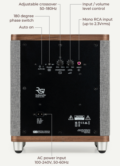 Driving the system is a powerful 100-watt Class D amplifier. This new generation amplifier keeps firm control of the bass driver at all volume levels with headroom to spare, although soft clipping is built in should the system ever be overloaded to avoid damage. Setup and adjustment is straightforward and with auto-on/standby, RS1 will automatically turn itself on and off as required.