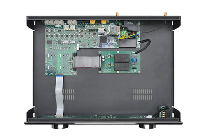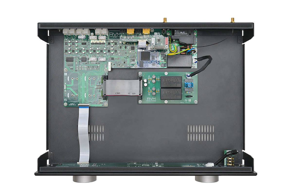 The new AVM X-STREAM engine® can stream all high-resolution formats, including DSD (256). This streaming engine is a complete AVM in-house development and is completely software-based, so it can be updated online in a future-proof manner. An HDMI (ARC) interface is also on board as well as the modern Bluetooth connection, further digital inputs and also a USB A interface are standard. Special attention has been paid to the phono input stage for MM and MC.