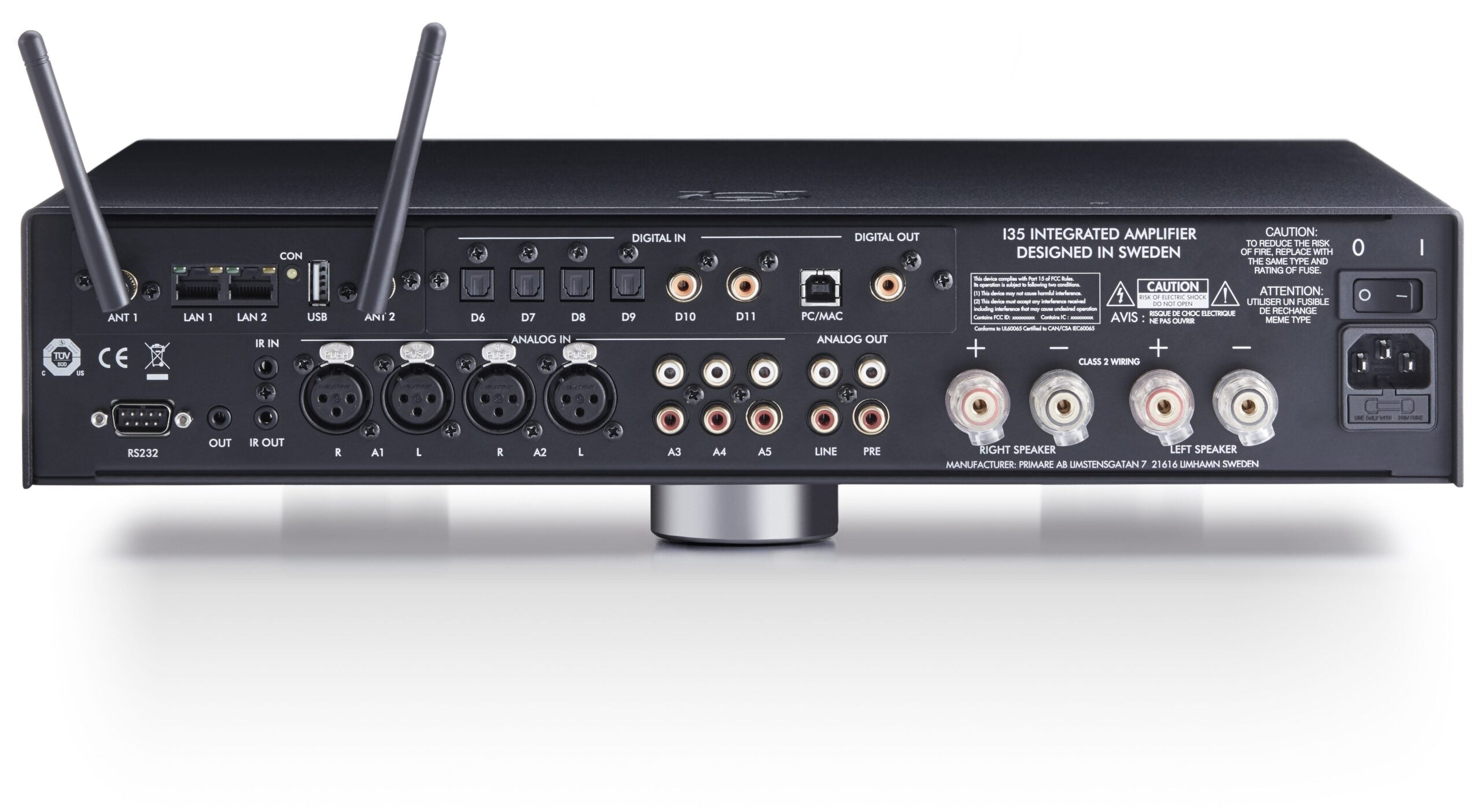 In addition to a pair of XLR and three RCA analog inputs, the modular design of the I35 allows for a sophisticated digital to analog converter module, DM36, as well as a Prisma network player module, SM35, to be added to the amplifier at any time for unprecedented system customisation.